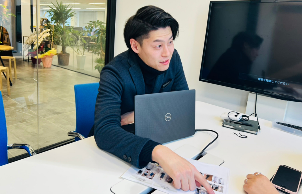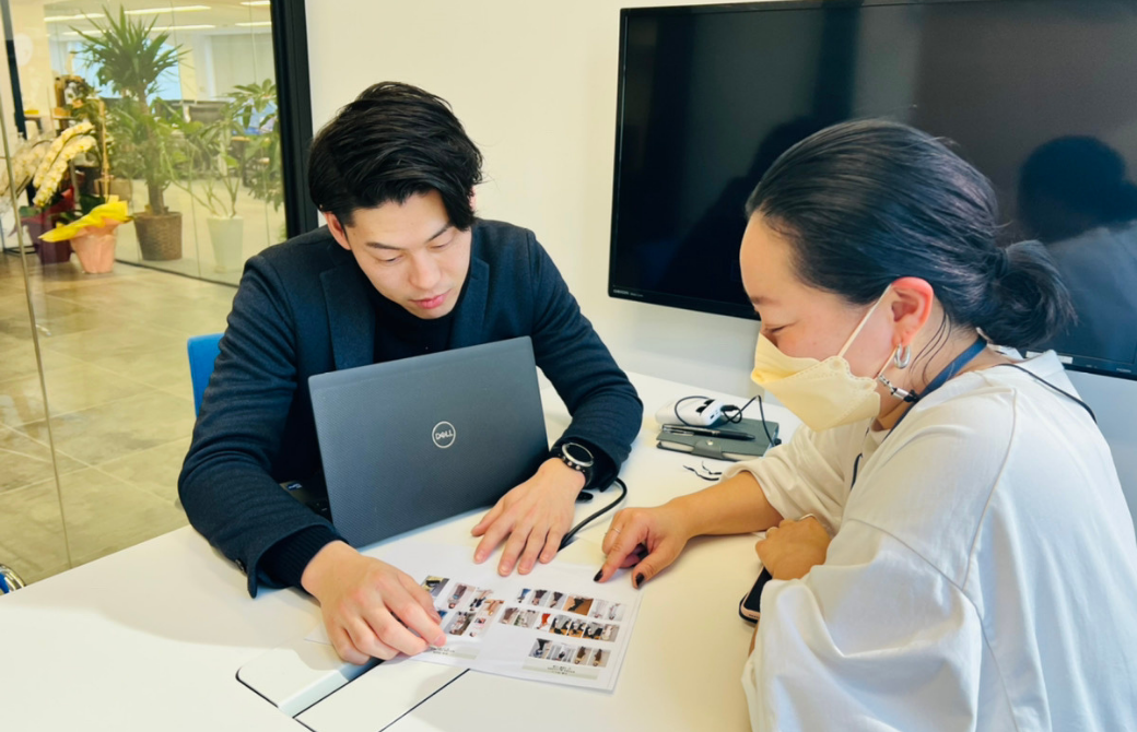 ビジネスデベロップメントグループの佃さん(写真右)と連携して、某ブランドのリブランディングをしています。僕は、どう売るかの戦略立案がメインですね。他にもインフルエンサーとの折衝など業務は多岐に渡ります。