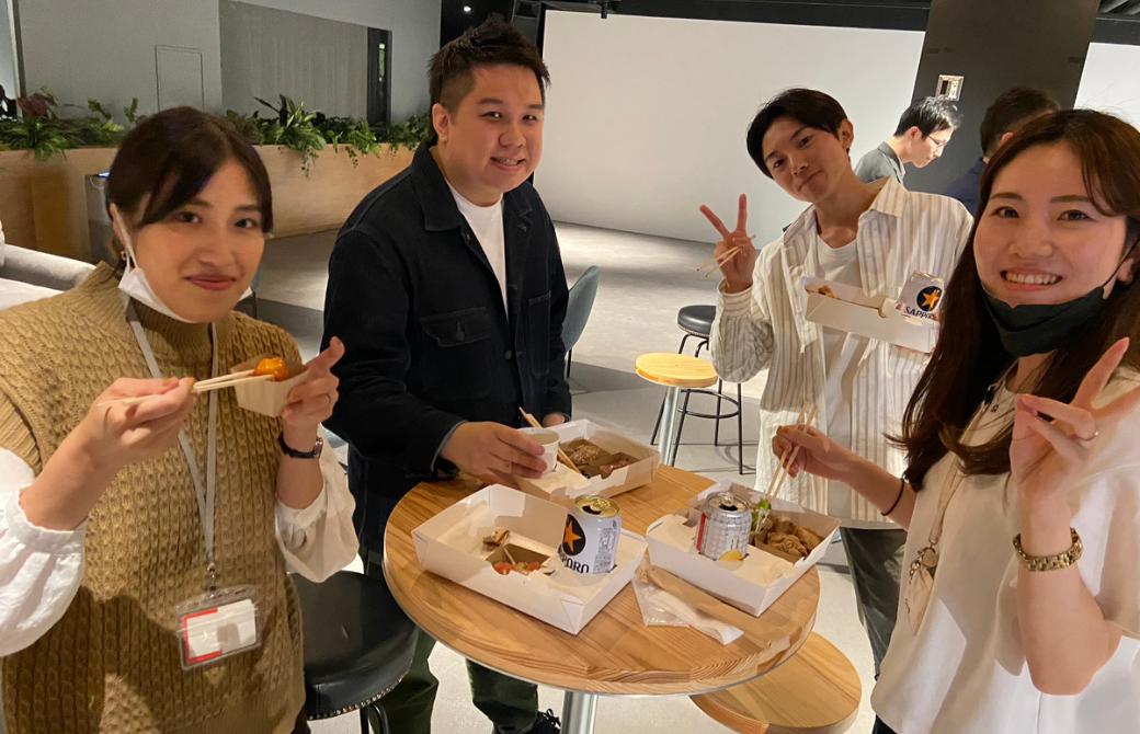 坂本さん:リモートワークで少し遠ざかっていた社員同士の繋がりをもう一度見直したいと思いました。僕ももっとみんなのことを知りたいし、気軽に相談してほしいと思ってる。今日は好きなだけ飲んで、色々話しましょ。