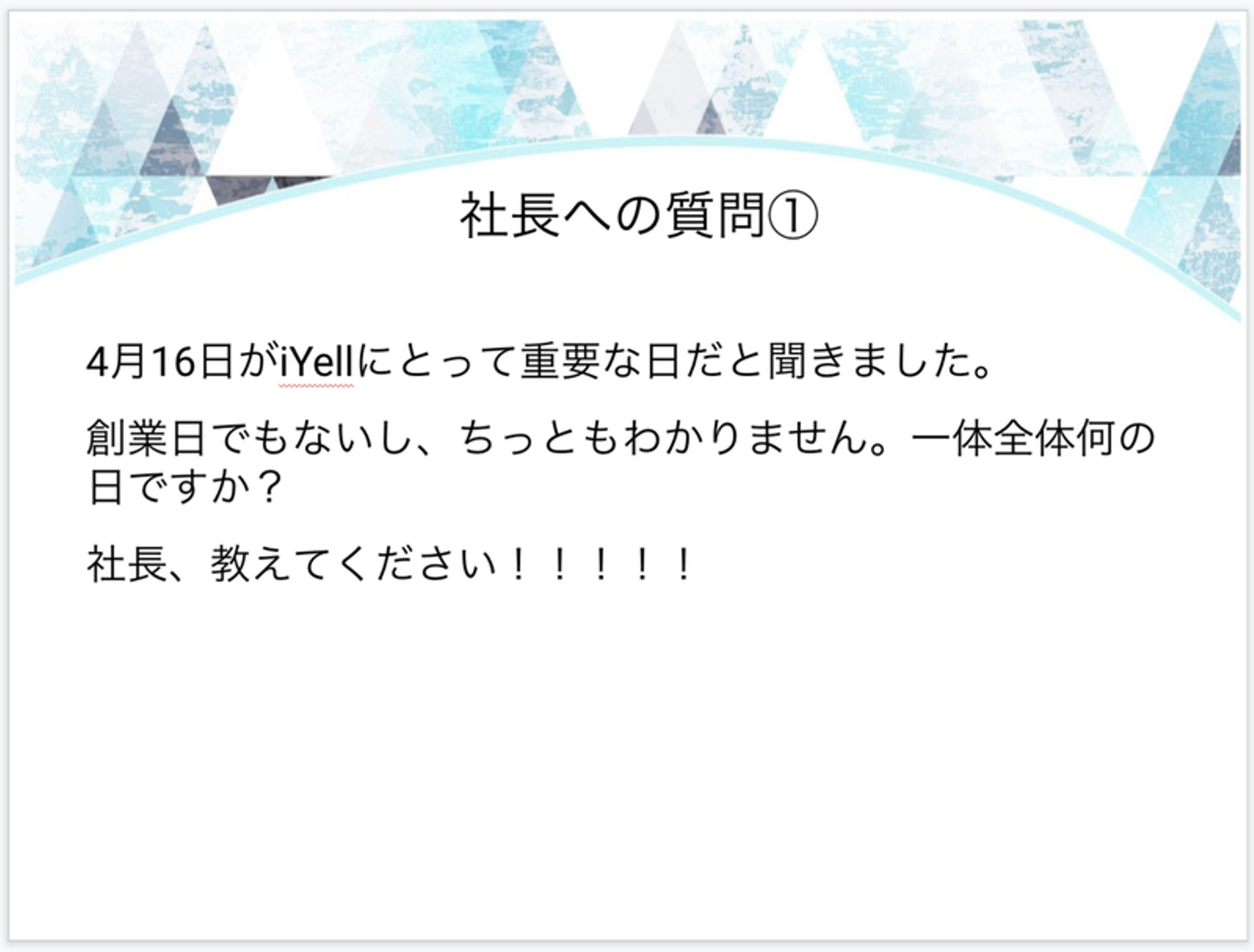 社長にバレないように朝礼スライドにこんなスライドを混ぜ込みました。