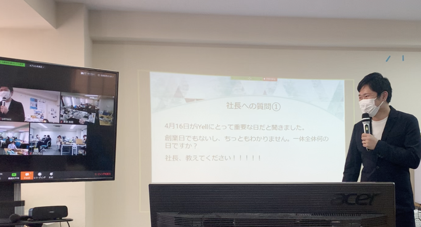 (コロナ対策の一貫でWEBで社員と繋ぎながらマスク着用しております。表情があんまり見れないのは残念です)