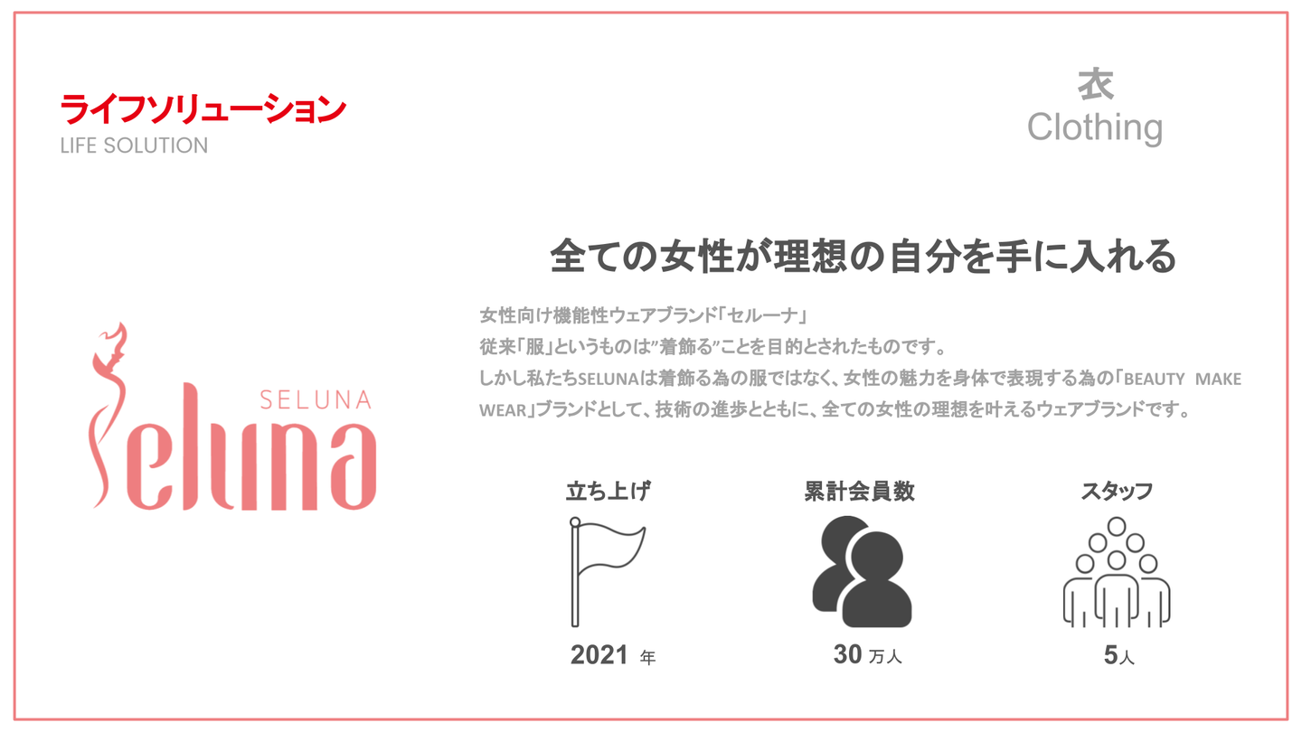 と2つの軸で事業展開しており、Selunaはライフソリューション事業の中にあるPJになります。