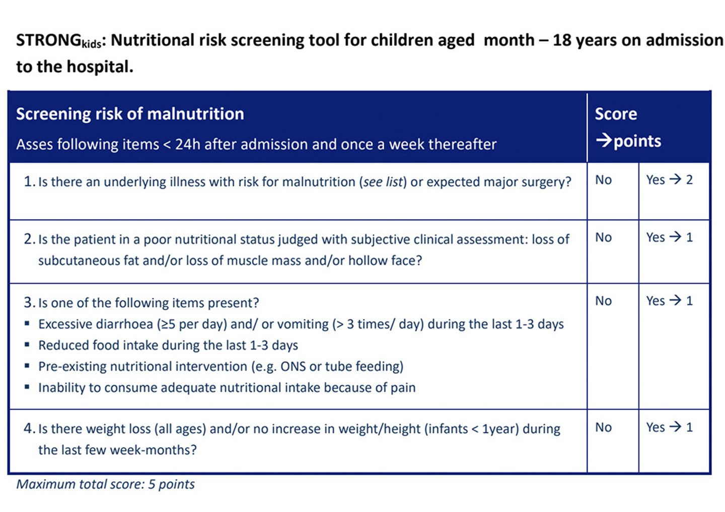 今回スクリーニングのツールとして選んだのは、入院児童の栄養スクリーニングとして開発された「STRONGkids」と呼ばれるものです。