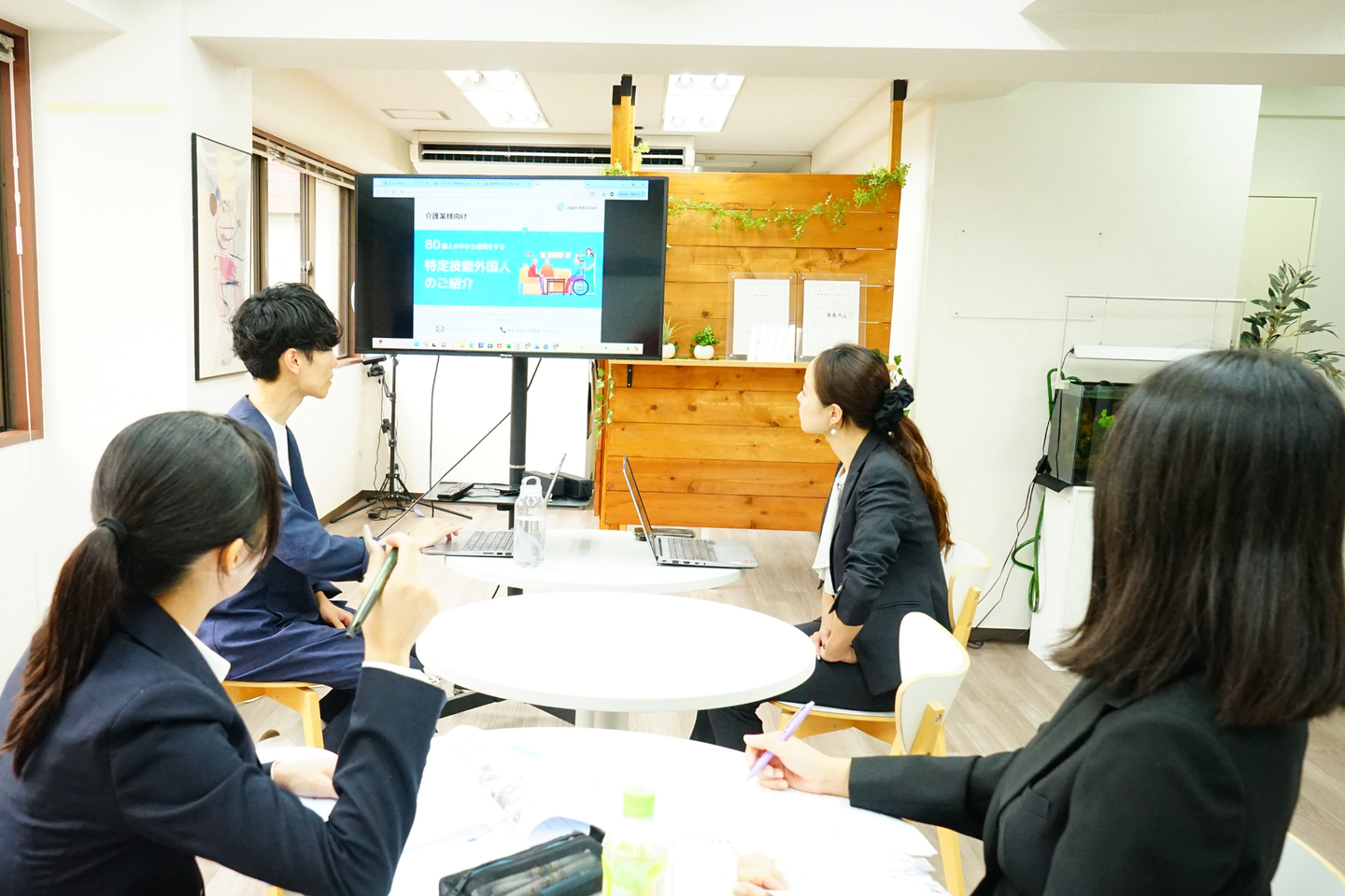 JJSは、日本で働きたい外国人を企業様に紹介する事業を行っています。法人営業で行う商談は、外国人を受け入れてくれる企業様を増やすために非常に重要なパートです!