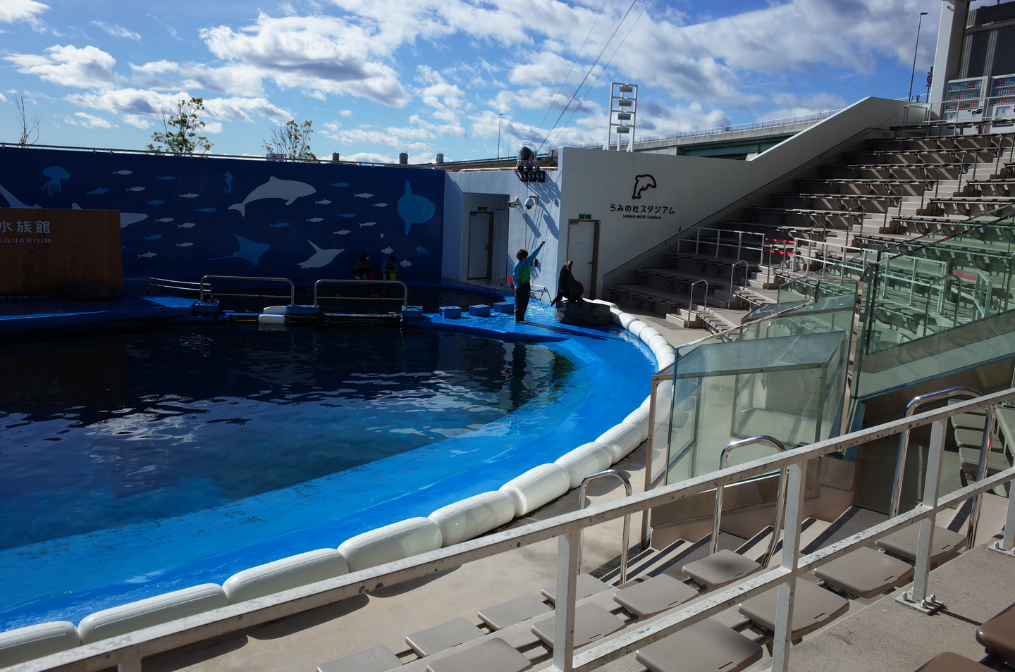 ショースタジアムは、基本的に水際のところでガラスの仕切りがあるのですが