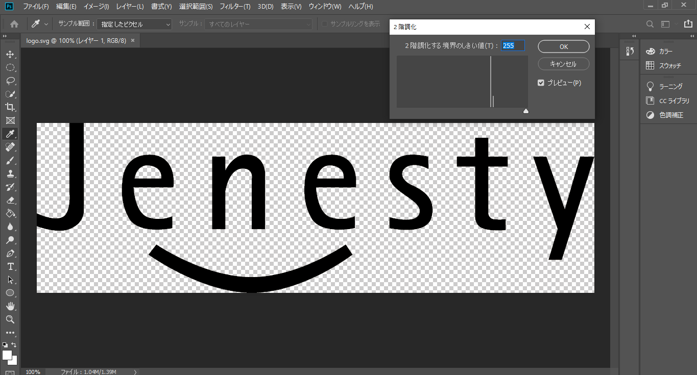 レーザー彫刻機で画像を読み込むにあたり、サイズを現実のサイズに変換(cm換算)するための計算と白黒二値化を行わなければなりません。