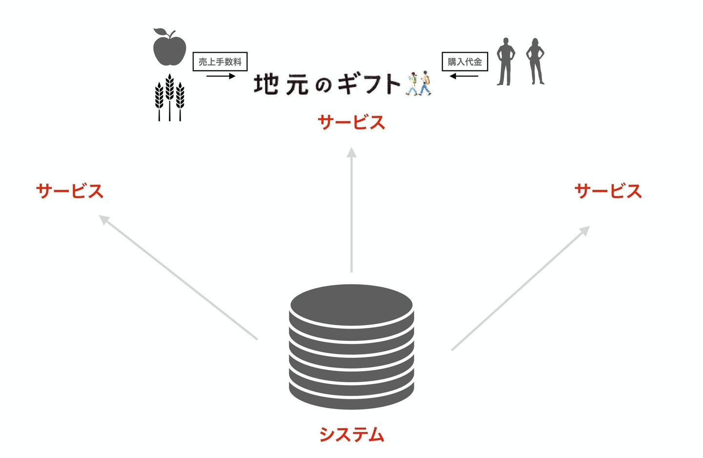 たとえば、私たちが展開しているサービス「地元のギフト」がその一例です。このカタログギフト事業は、「このプラットフォームを使って、私たちが代わりにカタログギフトの販売サービスをつくらせてもらいました」というモデル。つまり「プラットフォーム上で運営されているサービスのひとつ」に過ぎません。食品メーカーは、カタログギフトへの登録・出品には手数料はかかりません。