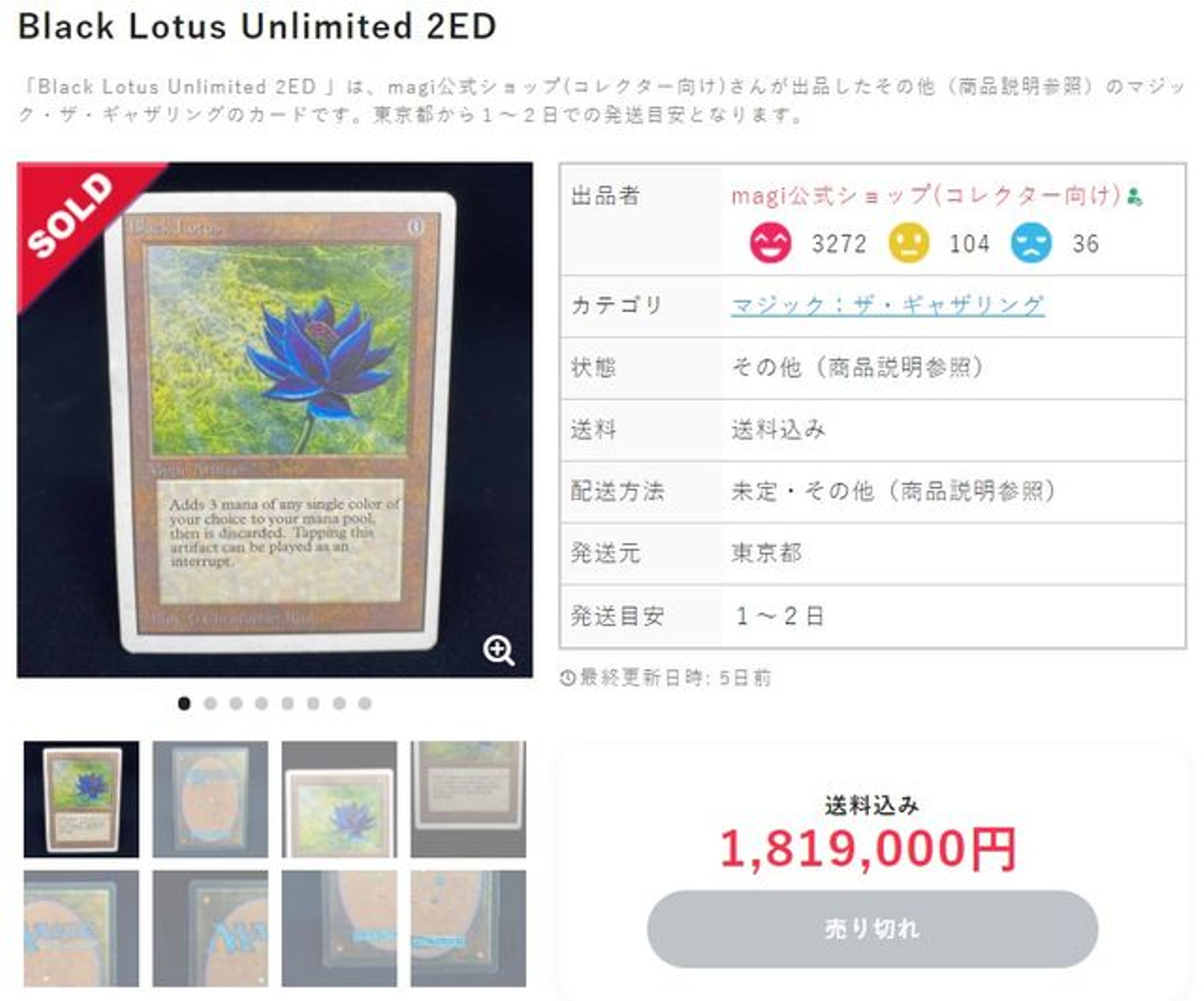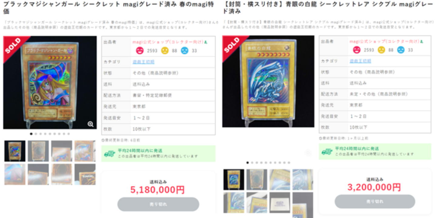 一方で、当時からカードをコレクションする、カードに投資するという文脈で遊戯王カード、ポケモンカードなどが注目を浴びるようになっていきます。急速にコレクター向けのカード、集める目的で売買されるカードの需要が急に伸びていました。これらは単価も高額で、カードによっては500万円を超える価値を有するカードも取引されます(さらに高いものは5,000万円等の価値がついてくるブラックロータス アルファ版のようなカードもありますが、市場には中々出回りません)。