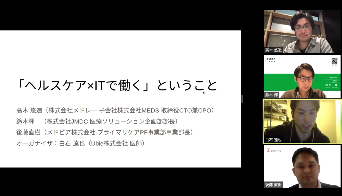 2021年1月20日に株式会社メドレー、株式会社メドピア、Ubie株式会社の方々と共にオンラインイベントを開催しました。