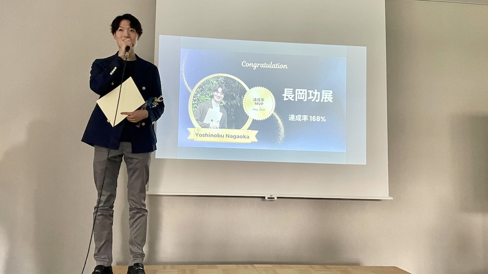 成果を出した人がその月頑張ったことを振り返ってもらうのは、