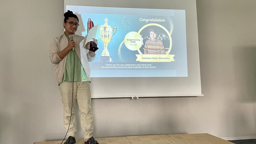 翌月頭にMVP発表会を行って、受賞者からコメントをもらいます。