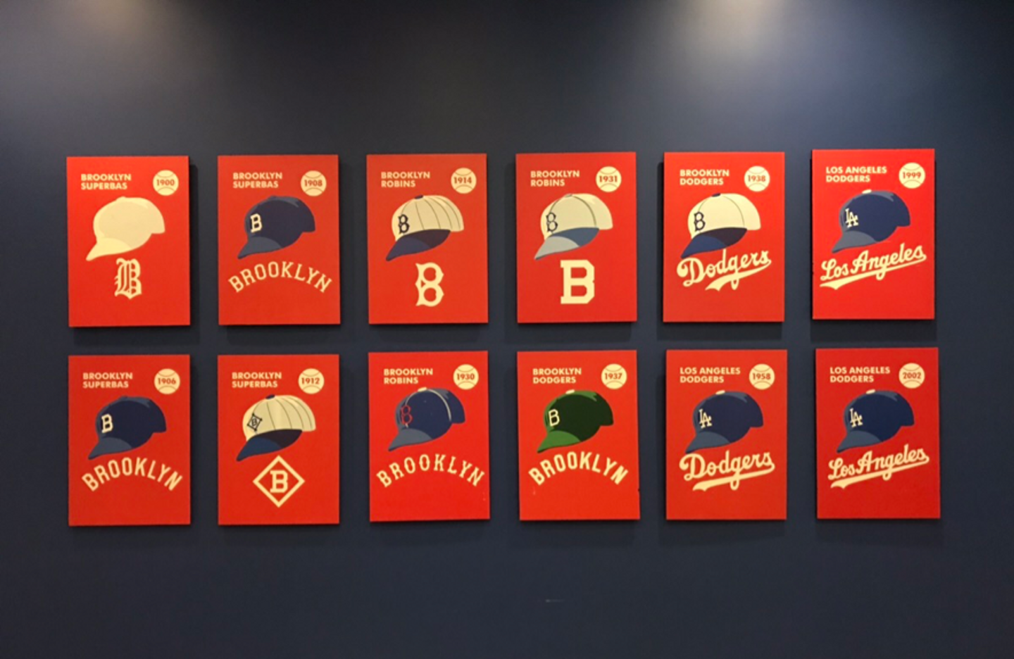 歴代のチームキャップを紹介する展示@VIPエリア(1枚家に飾りたい)