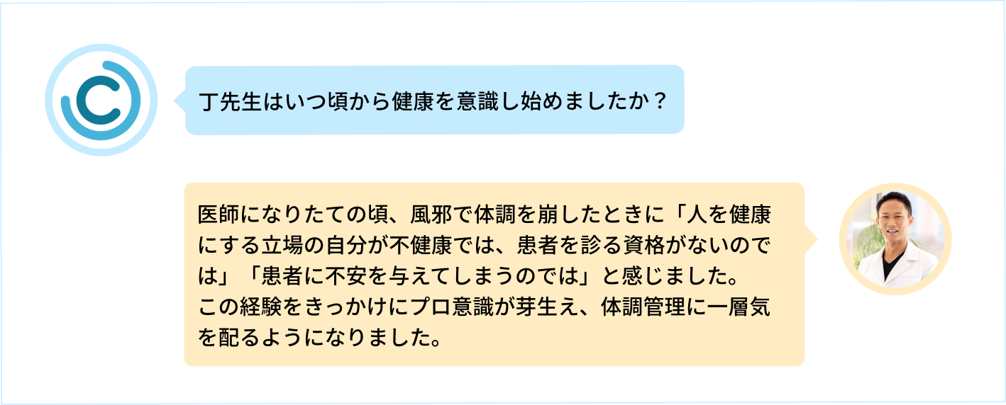 今回は、普段はなかなか聞けない医療業界のリアルに触れられるトークばかりで、大変興味深いものでした。丁先生の専門的な意見のおかげで、以前から気になっていた疑問が解消できたことに加え、自分の健康を見直す良いきっかけにもなりました。