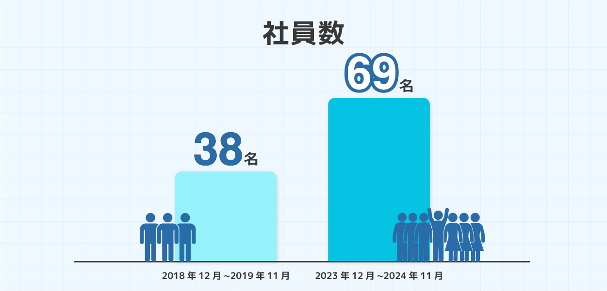 第5期は、会社で推進していたリモートワークがさらに加速し、経営革新計画の承認やTOKYO働き方改革宣言企業への認定など、会社にとって大きな変化のあった年でした。それからの5年間でどのような変化があったのか、数字を通して見ていきましょう。