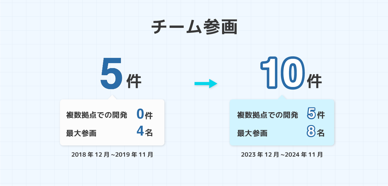 前述のとおり、チームでの参画体制を強化したことで、プロジェクト種別の比較にも変化が生まれています。