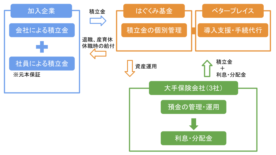 こちらのはぐくみ基金を加入事務業務委託機関の株式会社ベター・プレイスさんにサポート頂き導入に至ったわけですが、仕組みは以下の通りです。