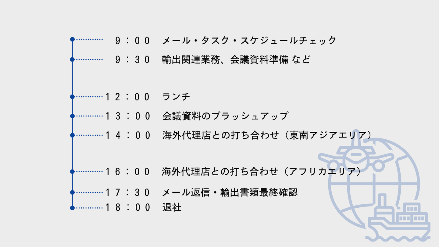 【午後】海外代理店とのコミュニケーションが中心
