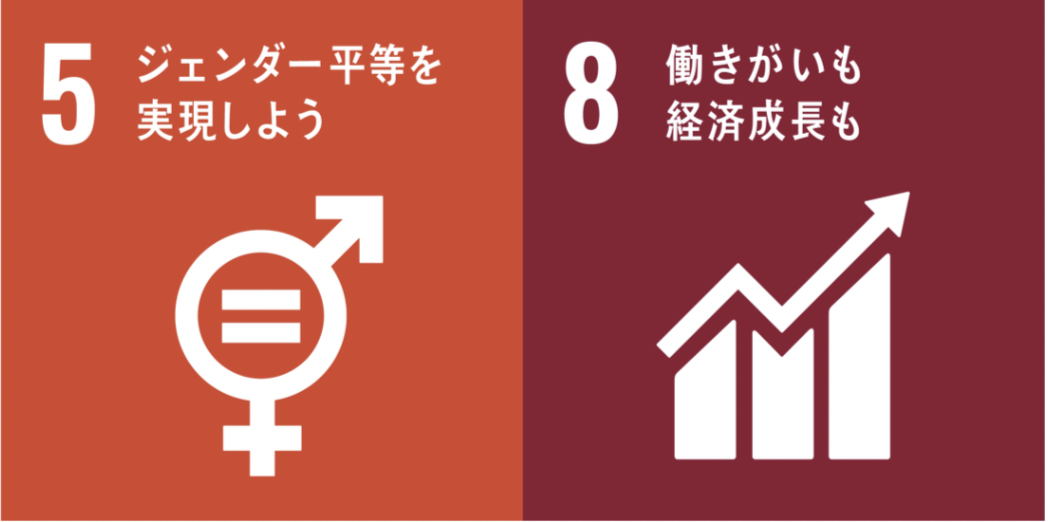 SDGs17の目標に当てはめると、「5.ジェンダー平等を実現しよう」「8.働きがいも経済成長も」にスポットを当てることになります。