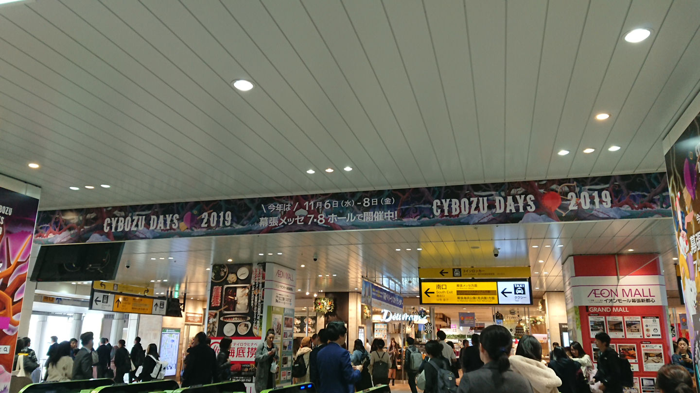 駅にはCybozuDaysへの参加者を迎え入れる装飾が施されており、ワクワクする気持ちがさらに高まります。幕張メッセに入ると、