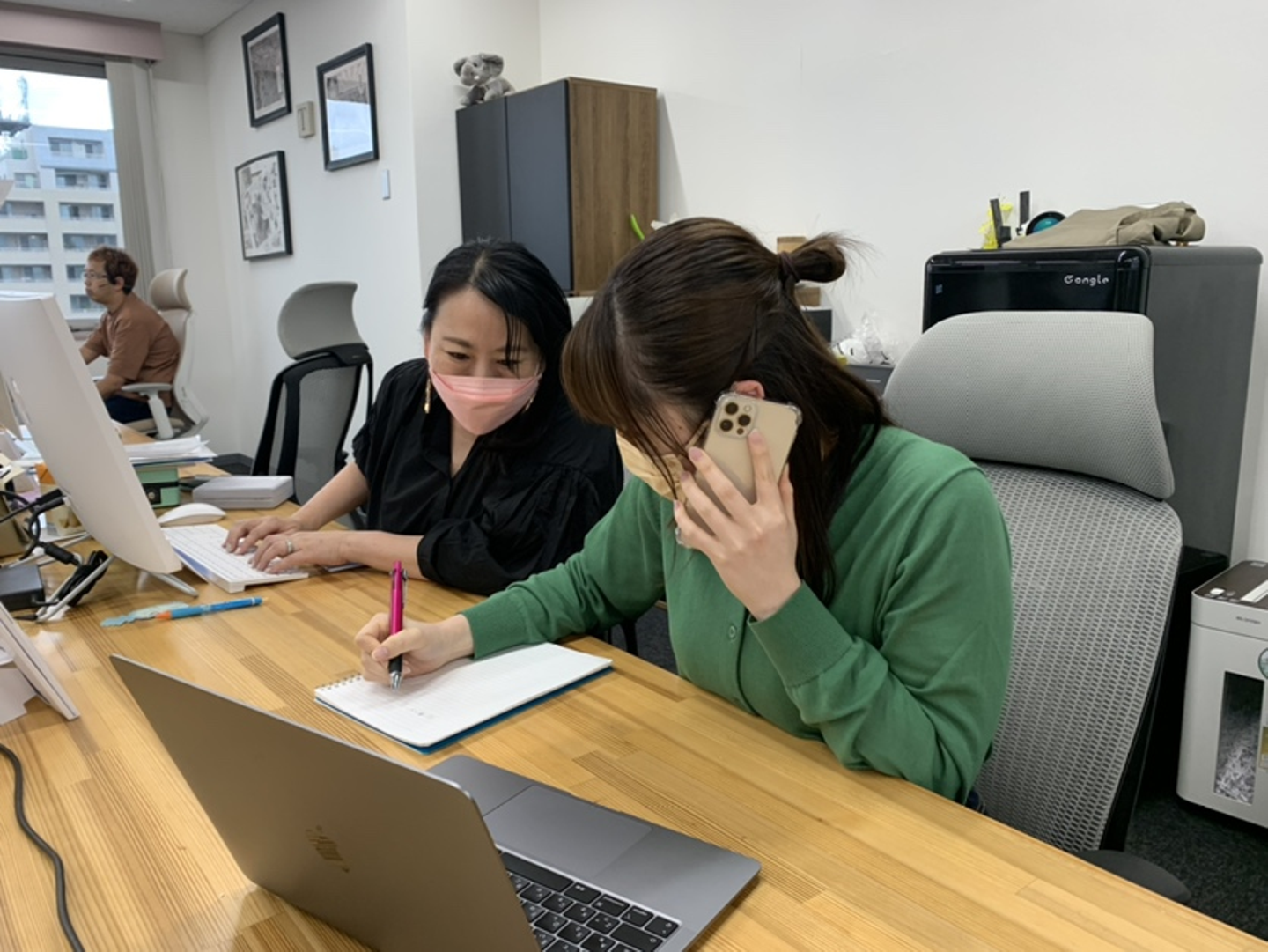 下の写真は、実際に電話対応をしている様子です。
