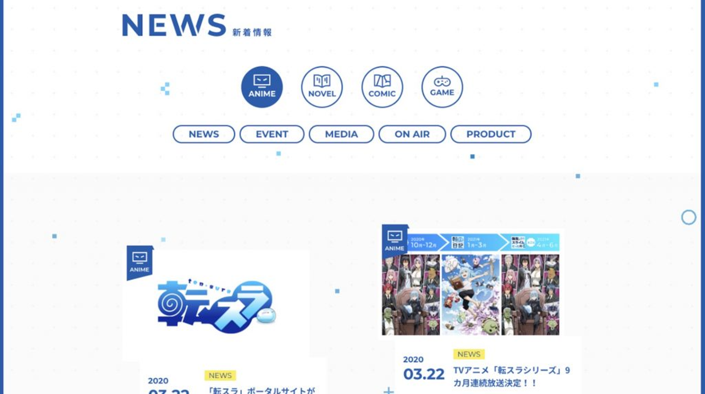 その当時担当していた案件では最も情報量の多い大規模なサイトです。転スラは小説を起点に、漫画やアニメなど様々な媒体に広がり続けています。それらの情報を包括してわかりやすくファンに伝えられること、さらに更新頻度も高いのでCMS設計をきちんと行いつつ、今後のコンテンツ追加なども考えて、フレキシブルな設計も心がけました。