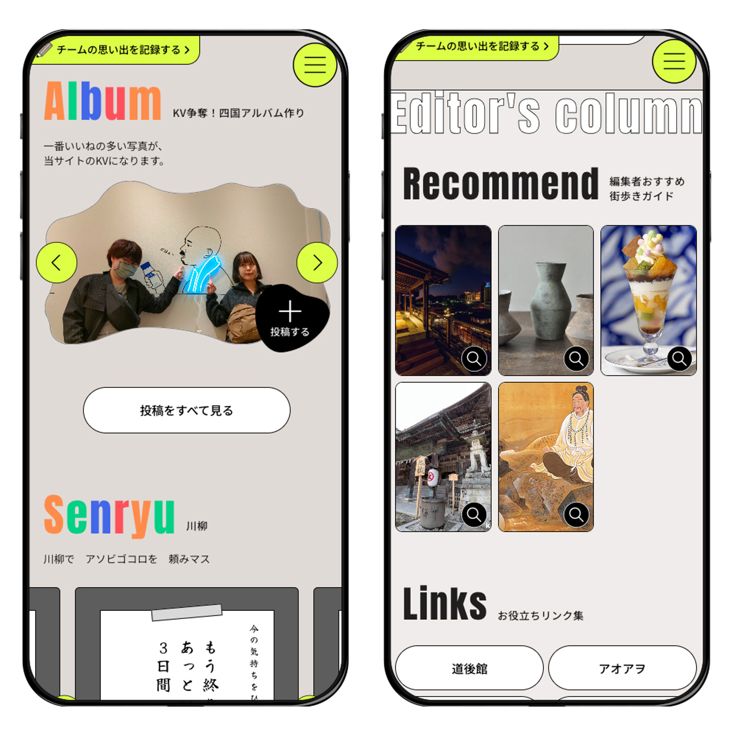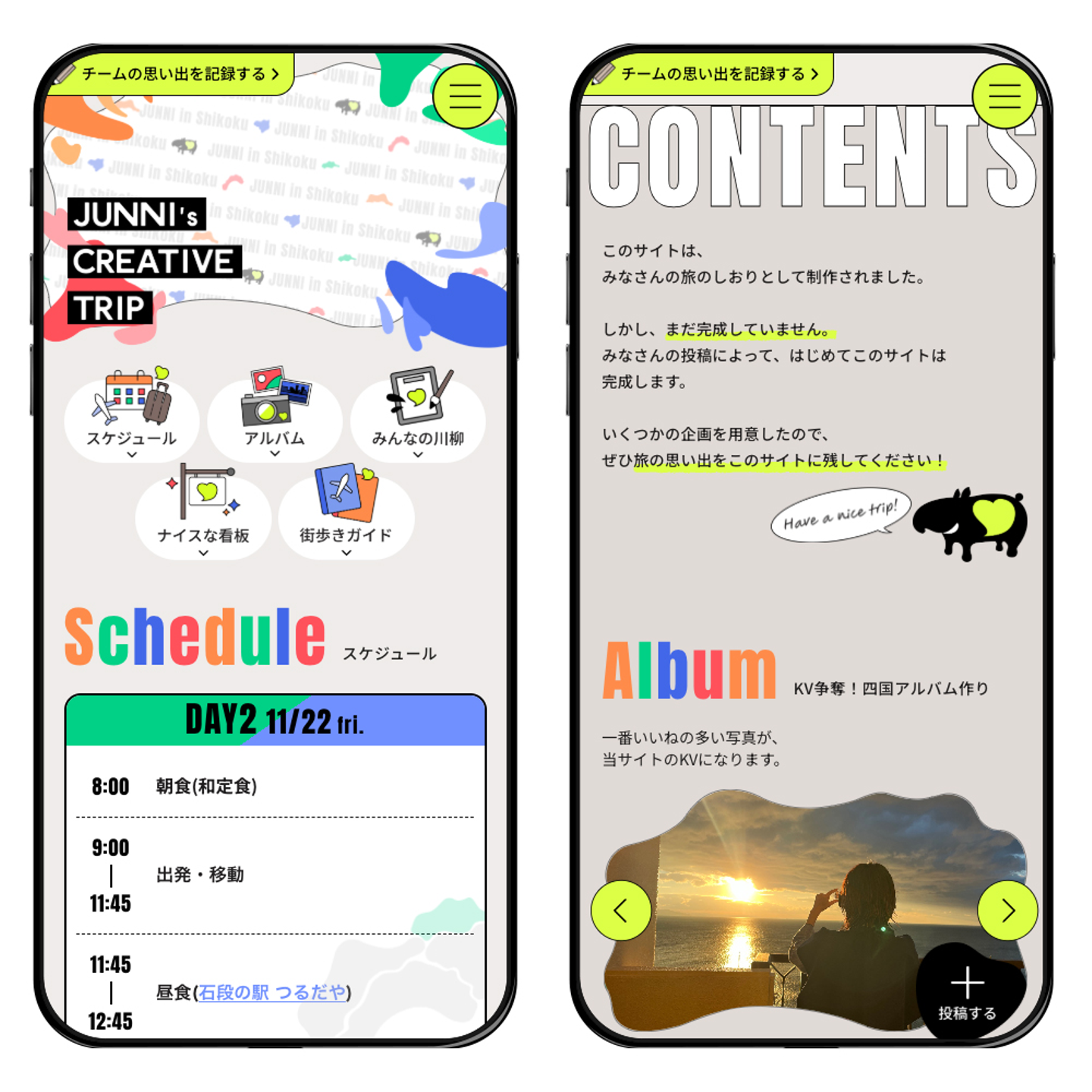 実はコレ、今年初めて「研修旅行委員会」が立ち上げられ、そのメンバーの提案で研修旅行用に皆が画像や川柳などを投稿して思い出を共有したり、レクリエーションにも使える特設サイトを短期間で制作してくれました!!