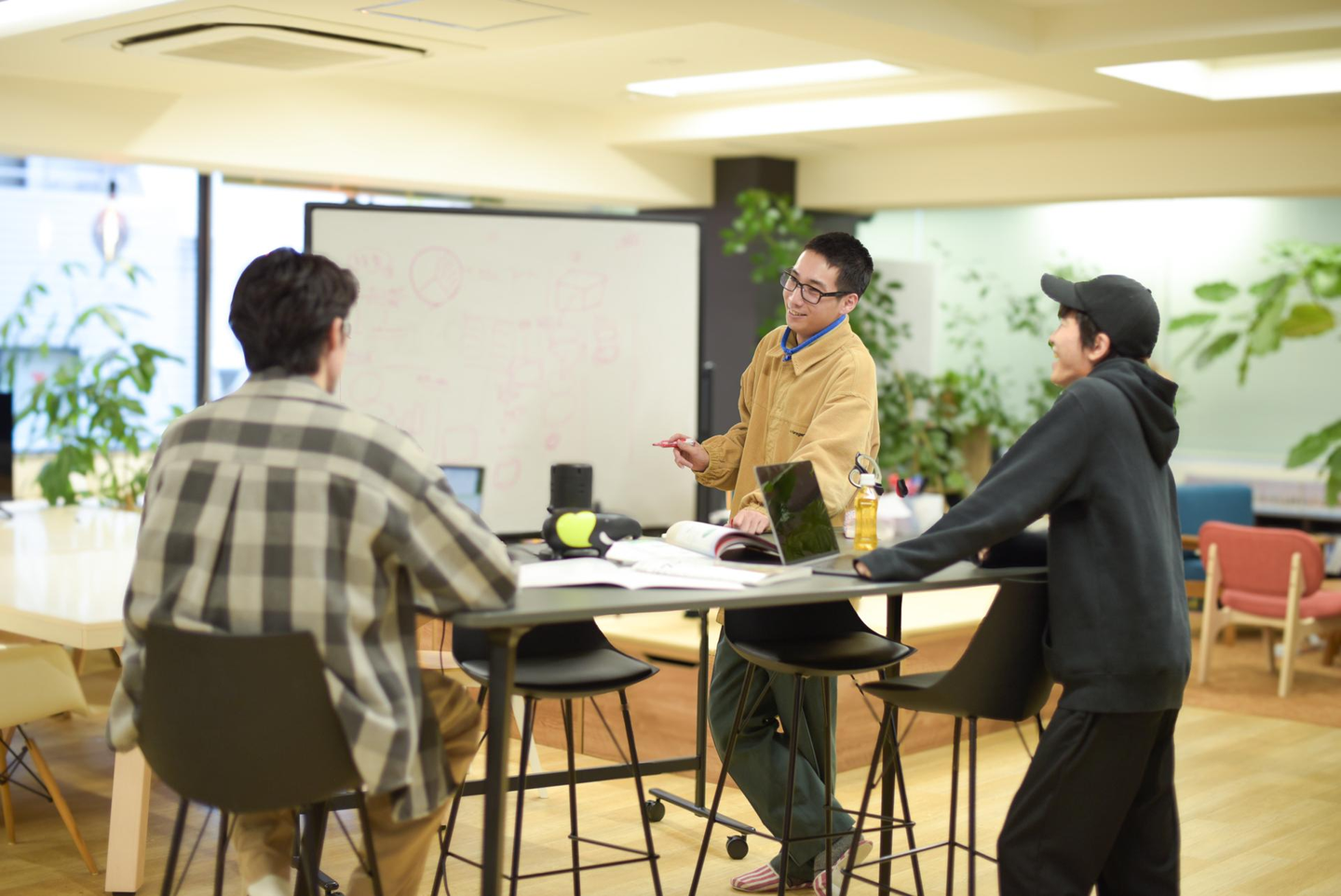 制作に関わる全職種が揃っているため、専門的な知識を共有し合いながら成長できる環境があります。さらに、スキルアップを支援する制度として、書籍購入費やセミナー参加費を会社が全額負担。全員がデュアルモニターを使用可能で、オフィスコンビニや「OFFICE DE YASAI」など働きやすさを重視した設備も整っています。