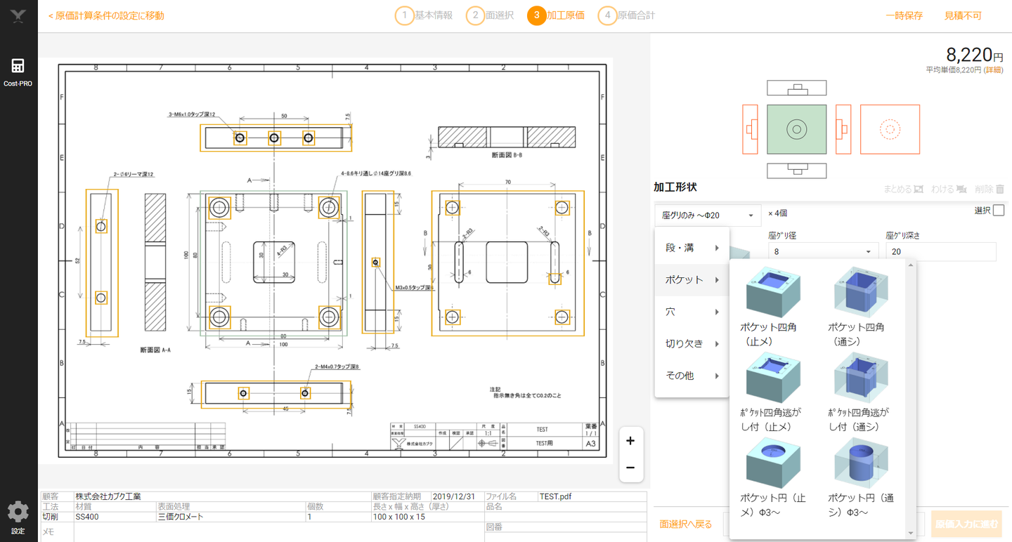 高い図面読解力を不要にし、簡単操作でヒトによるバラツキが出ない加工原価見積りを実現します。