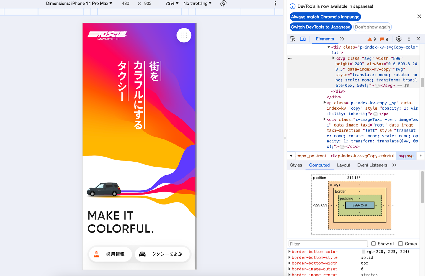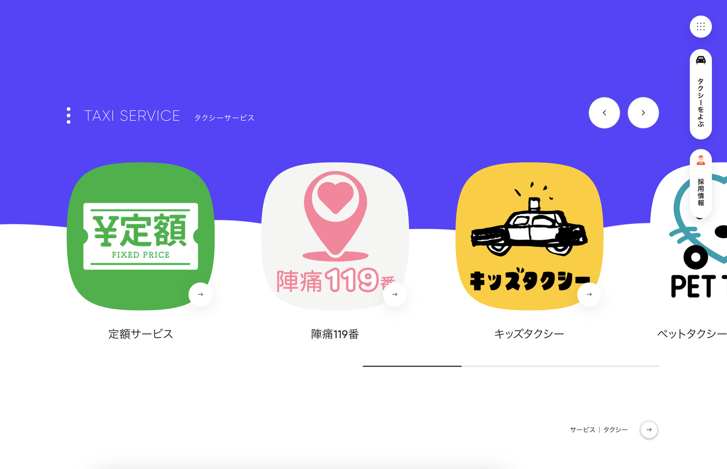 基本的にタクシー利用する人に対してはアプリへ誘導するボタンがあったので、ターゲットの違いが三和交通さんとのサイトデザインの違いに繋がっている気がします。