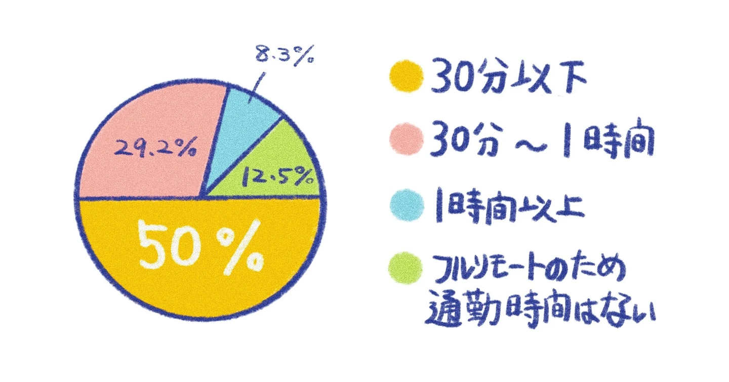 通勤時間によって、時間の使い方ってちがいますよね。まずはみんながどのくらいの時間を通勤にかけているのかを聞いてみることにしました。