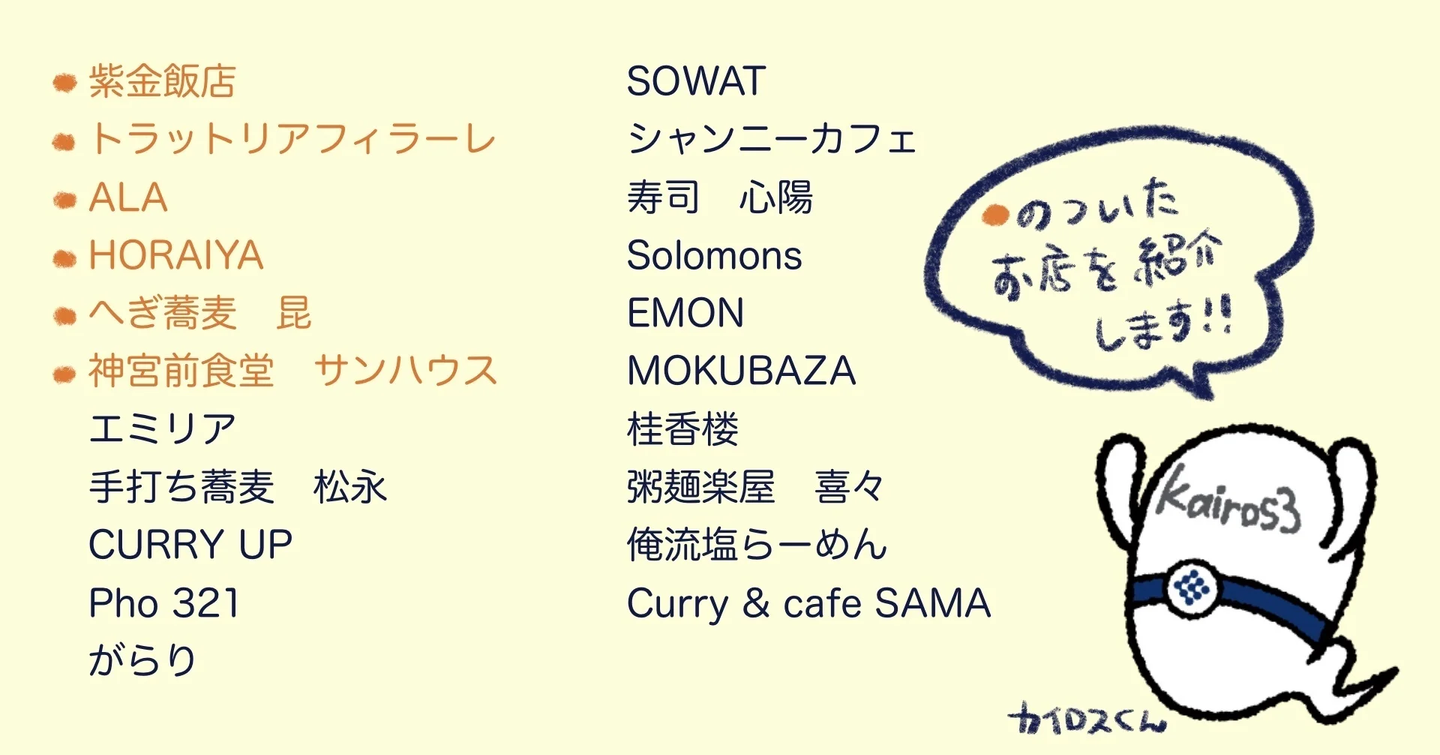 たくさん共有していただいて、どのお店をご紹介するかとっても悩みました!本当は全部のお店を紹介したいところですが、今回の記事では6つに絞ってご紹介します。