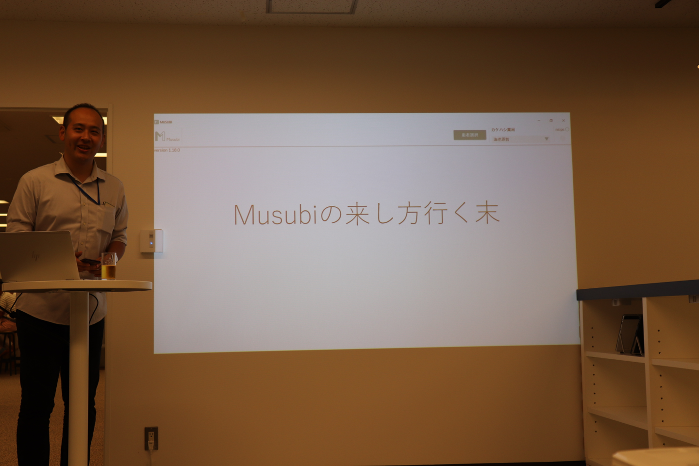 CTOの海老原からは、サービス「Musubi」の未来や可能性についてのプレゼンテーション。