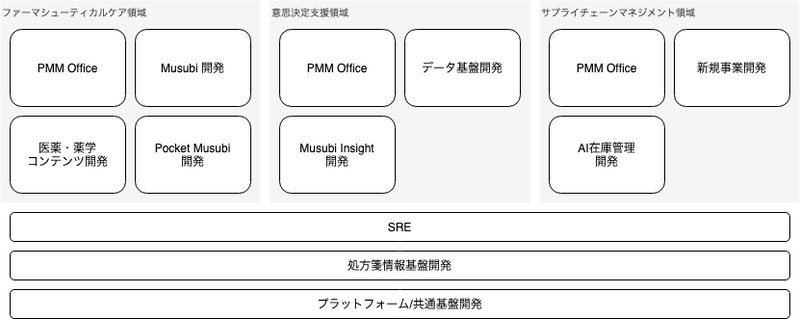 ピラミッド構造の組織ではなく、プロダクトごとの開発チームを、提供価値ごとにグルーピングした組織体制です。