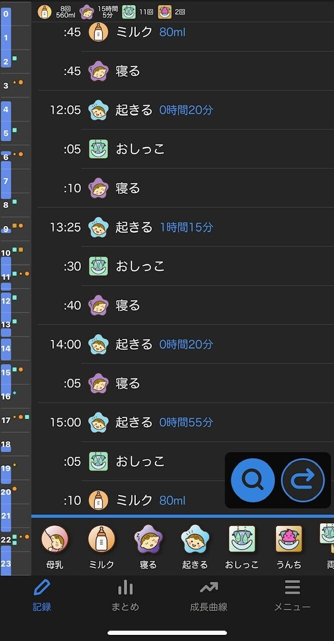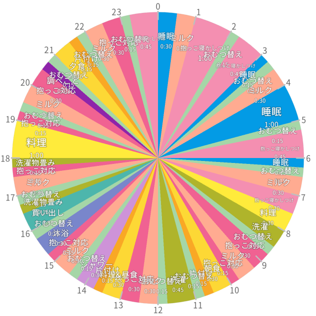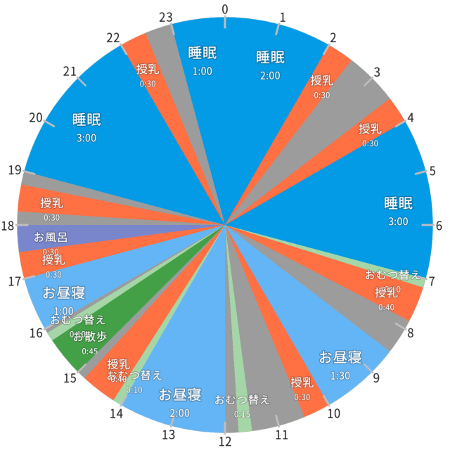 独自に実践したのが、リストを活用したスケジュール管理です。と言っても、そんなたいそうなものではなく、「何時から何時までは昼寝」「何時から何時までは散歩」ということを綴った記録です。毎日目まぐるしすぎて前日の記憶がないような状況だったので、記録に残しておけば「やば、全然寝てないじゃんww」と笑い話にできるかもしれないと思って。