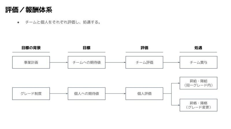 ユーザーへの価値提供を異職種のチームで成すことが前提にあれば、チーム単位で評価されることへの納得度は高いだろうと考えました。チームと個人の両方の評価を共存させるために、チームへの評価は賞与扱いとしています。