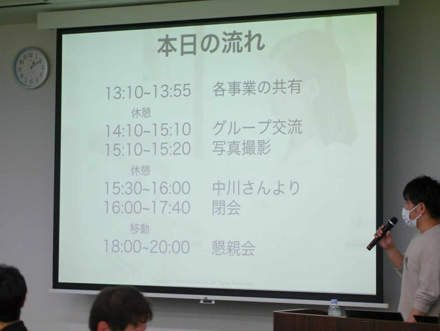 カケハシはフルリモートで働くメンバーも多く、普段は東京・名古屋・福岡など多様な場所に住みながら一緒のチームとして働くことが当たり前になっています。そのため、午前は移動時間とし、午後からの開催となりました。
