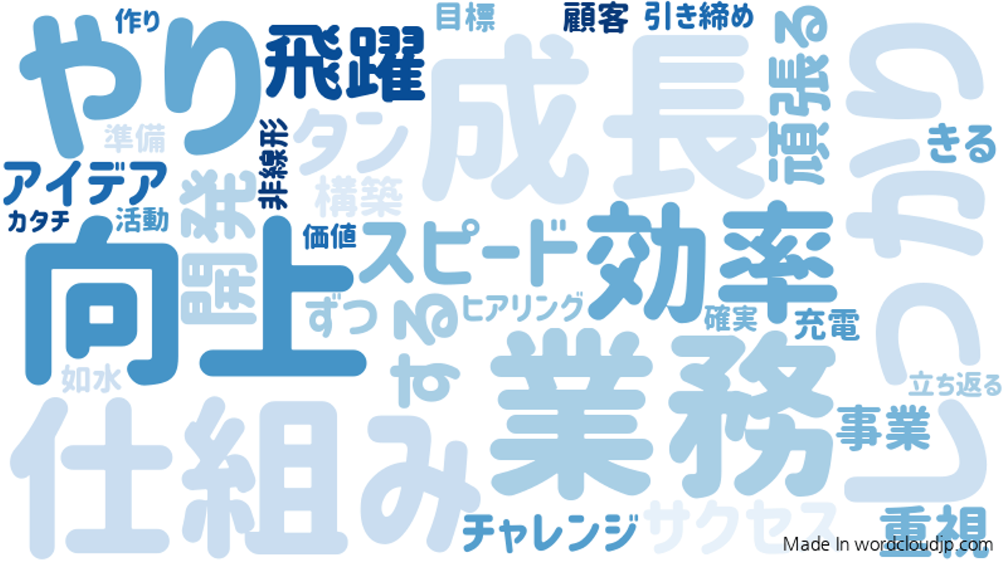 さて、今回も全体会議の最後にはアンケートを実施し、みんなの意気込みを集計。一年のはじまりなので気合の入ったコメントが多く、読んでいるだけでわたしも感化されていきました。今年も一年がんばるぞ!