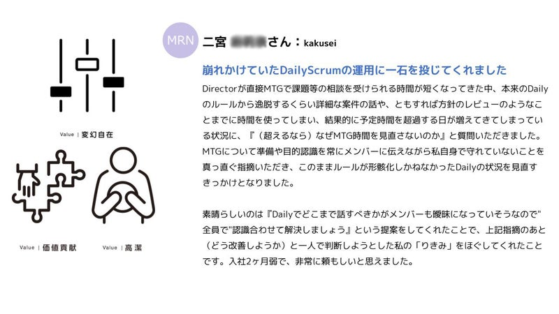 日常に埋もれてしまいがちなメンバーのグッドプレーやファインプレーに光をあてることで、新たな価値貢献のきっかけをつくることを目指して取り組んでいます。