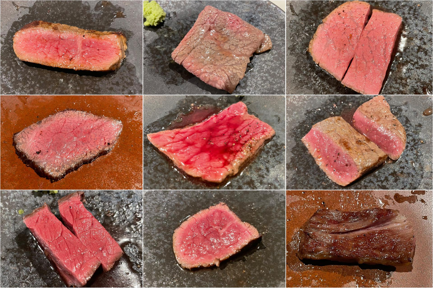 写真でも肉汁や質感の違いが伝わってきますよね!!各部位の特徴にあった切り方・焼き方で全然違うお肉の表情が見えてきます🔍