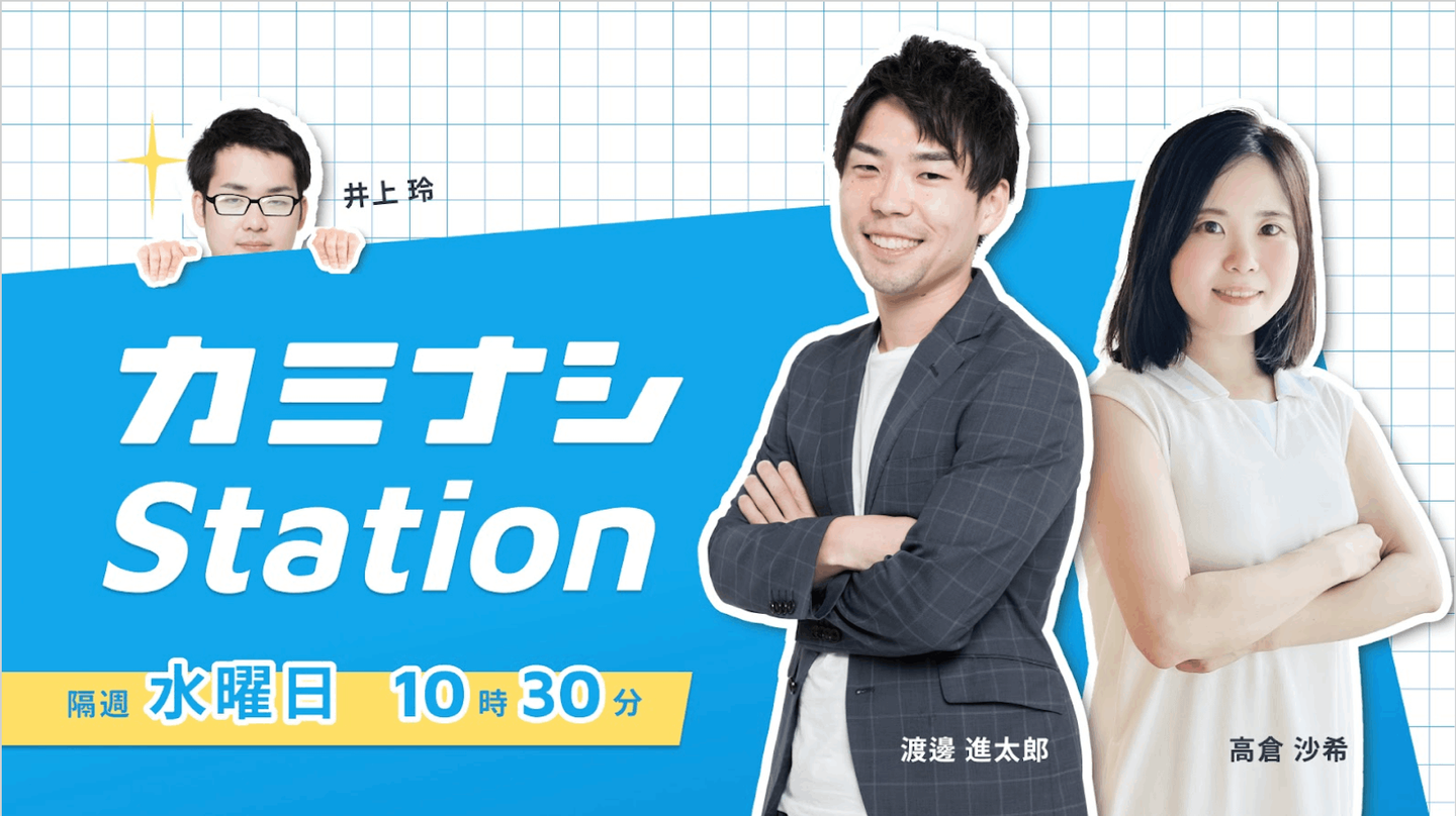 今回はセールス・渡邊と営業企画・高倉が運営/司会に。「カミナシステーション」という名称として、TVの報道番組のようなスタイルで運営しています。