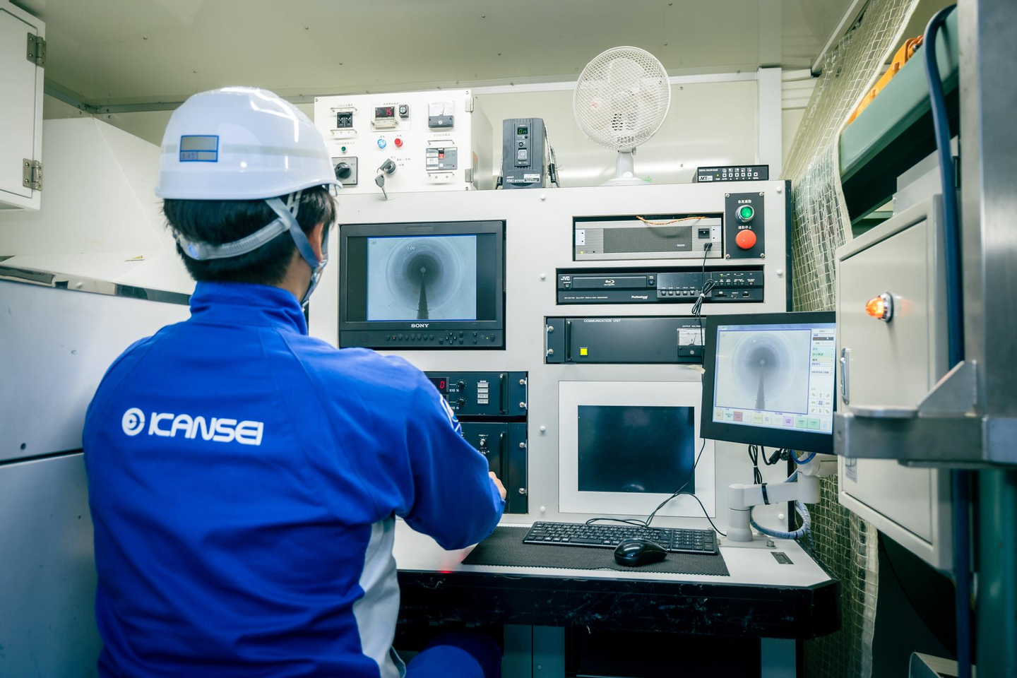 ここまで機械化が進んでいる下水道管の調査・清掃ですが、業界ではまだまだ作業員が管内に入って人の手で行なうことも多いのが現状。しかしながら、管内での作業は、有毒ガスの発生や酸素欠乏、突然の大雨による水位の増加など常に危険と隣合わせです。管清工業は作業員の安全を守りながら、同時に効率性をも追求した開発に取り組んでいます。