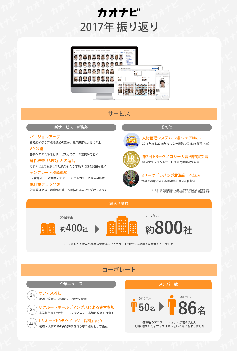 HRテクノロジー業界も、この1年の間に便利なサービスがたくさん誕生&発表されており、活況を呈しています。カオナビも業界の発展に貢献できるよう、さまざまな活動をしていく予定です。ぜひ、2018年のカオナビにご期待ください。