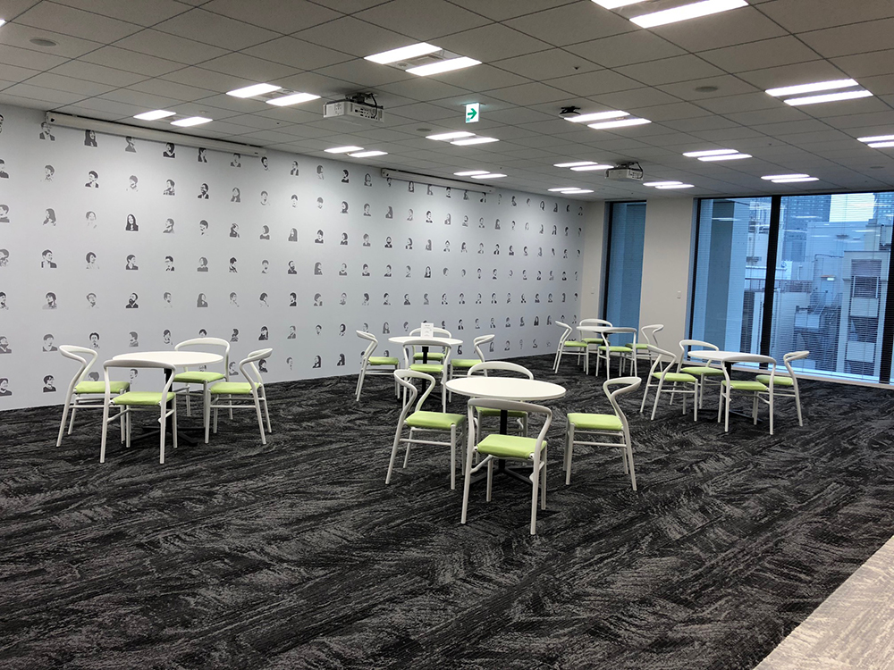 カオナビラウンジの壁には、カオナビらしさを表現するため全メンバーの顔写真をシルエットに加工して配置していただきました。