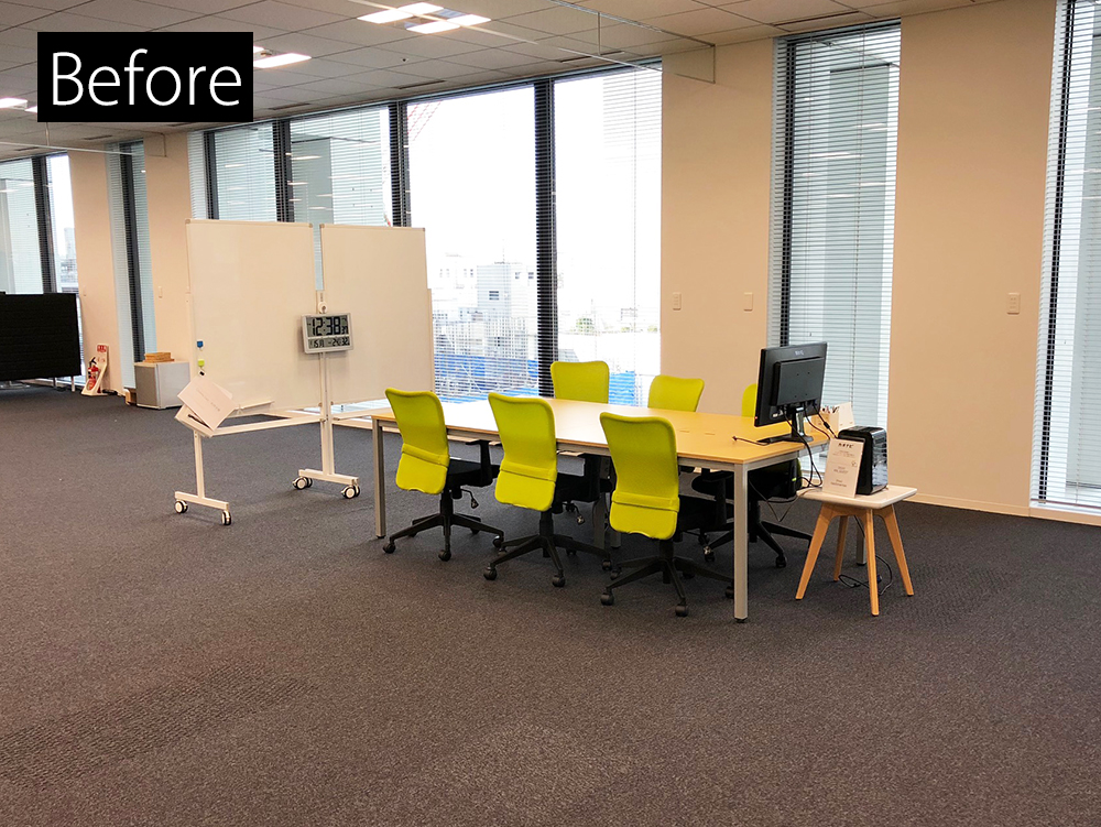 ビフォー:執務エリア内の窓際に仮設された超オープンな会議スペース