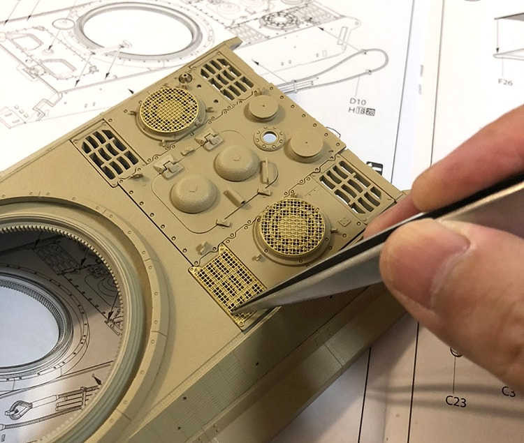 続いて戦車にエッチングパーツを取り付けます。
