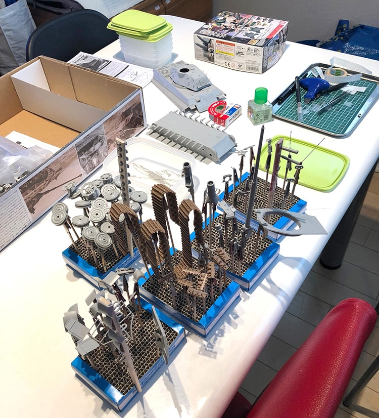 ここからキャタピラの組み立てや細かい調整が始まります。