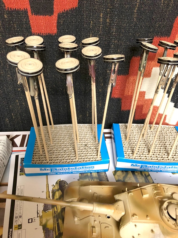※4 ネコの手:棒の先端にクリップがついているプラモデル製作の道具。細かいパーツを塗装するときに手が汚れずに済みます。