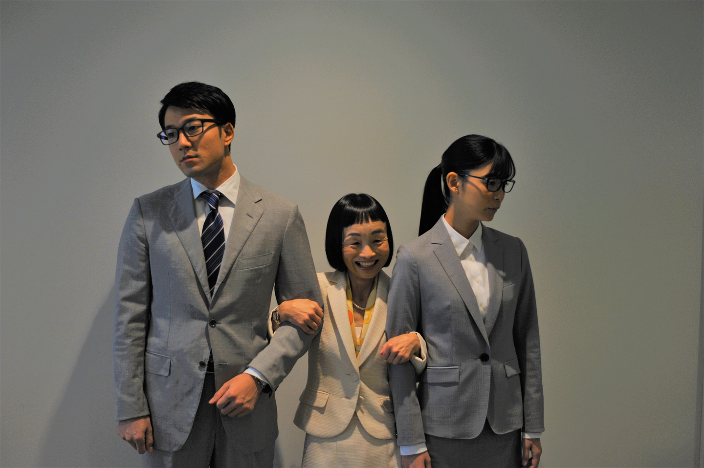 “毎日のようにキミ!と呼ばれることに辟易する社員が集まる会社“を想起させられるよう、エキストラの格好は全員スーツに眼鏡。みんなが同じような見た目で、無機質な人々の集団。