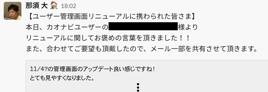 社内でも「カオナビ」を利用しているので、バックオフィスや人事からの意見を聞くこともあります。あとは直接、お客様とのヒアリングの場を設けることもありますよ。
