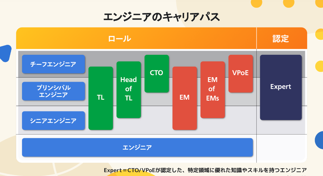 例えば本人の意向によっては、ずっと現場のエンジニアとして技術を磨くキャリアを選択することも可能ですし、エンジニアとしては、このようなキャリアパスが整備されていることは大変ありがたいなと思います。