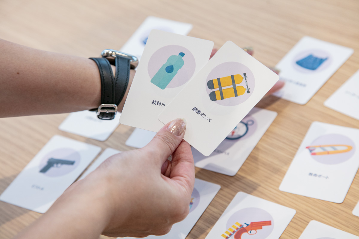 以前、NASAゲームという4人が1チームを組むワークショップを開催したときに、自分とは異なる考え方を持つ相手の存在を身をもって実感する体験をデザインしました。このゲームのルールは、自分達が乗る宇宙船が壊れて月に取り残されてしまい、生きて地球に帰るために宇宙船にあるアイテムを1〜15位まで優先順位をつけること。まずは個人でアイテムを並べるのですが、最終的にはチームで1つの答えを生み出さなくてはいけません。